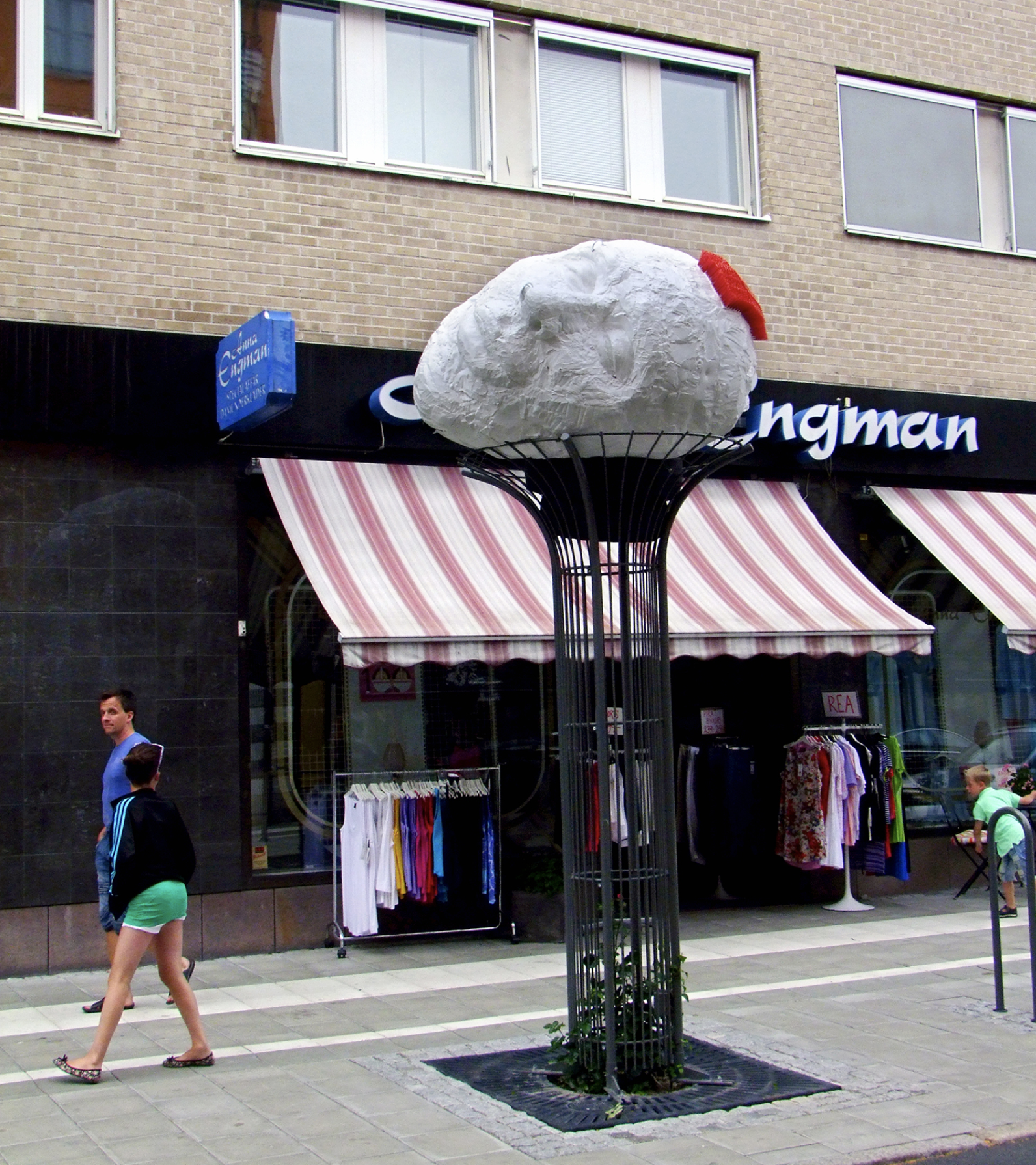 “Al colocar esculturas, imágenes o sonidos en un entorno urbano, trato de poner en marcha, establecer un diálogo, como una investigación de los lugares públicos cotidianos. Como artista colombiano que visita Suecia, experimento muchas diferencias, diferencias. Este hecho me plantea interrogantes sobre fronteras, sobre tiempos y lugares. Todo se detiene y los contrastes se vuelven momentáneamente transparentes, translúcidos.”